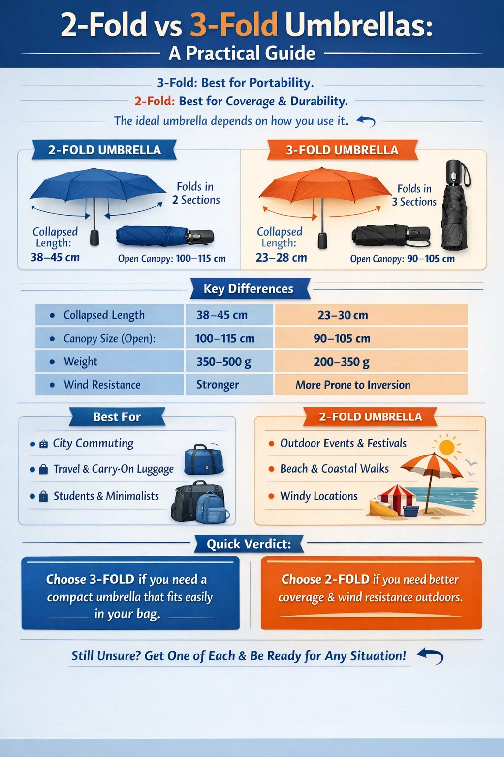 Izbor između dvostrukog i trostrukog kišobrana doista je pitanje o životnom stilu, a ne o kvaliteti. Nitko nije objektivno superioran u svim situacijama. Evo najjasnijeg mogućeg sažetka: