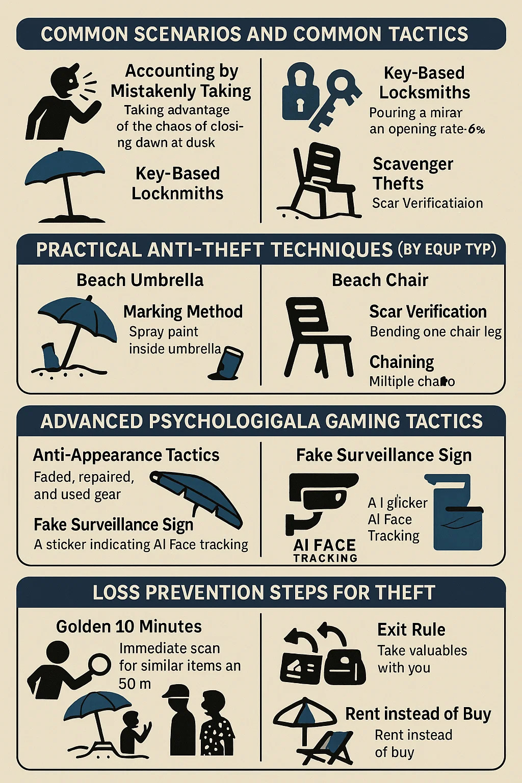 Da, krađa suncobrani za plažu a stolice su čest problem na plaži. U nastavku je strategija odgovora na više razina temeljena na iskustvu upravitelja plaža i redovitih posjetitelja: