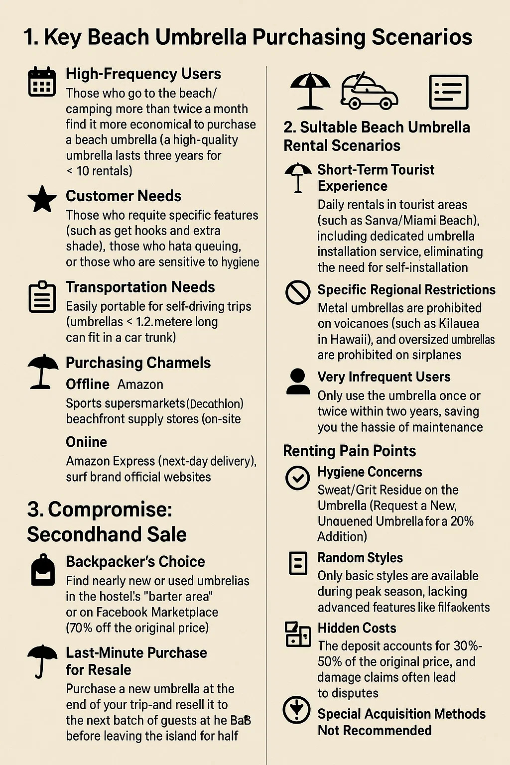 Korisnici visoke frekvencije: Oni koji odlaze na plažu/kampiranje više od dva puta mjesečno smatraju da je ekonomičniji kupiti kišobran na plaži (visokokvalitetni kišobran traje tri godine za ≈ 10 najamnina).